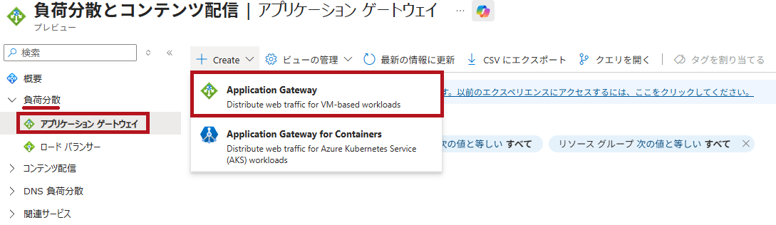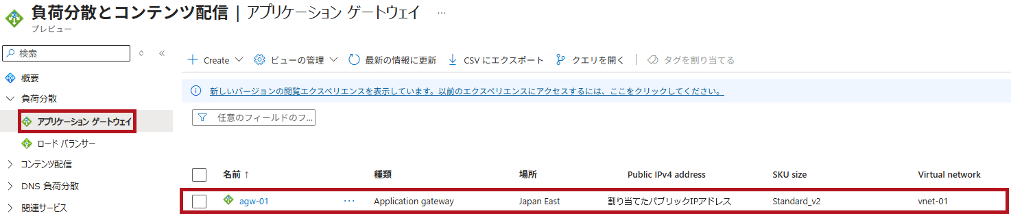 Azure Portalを使用して、Application Gatewayのリソースを作成します。