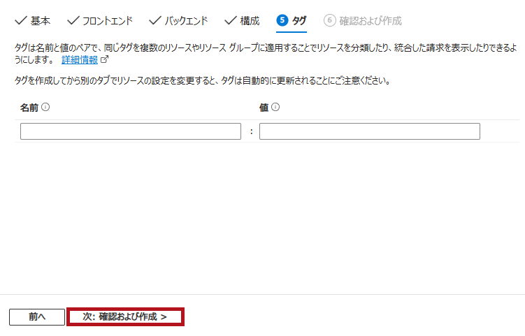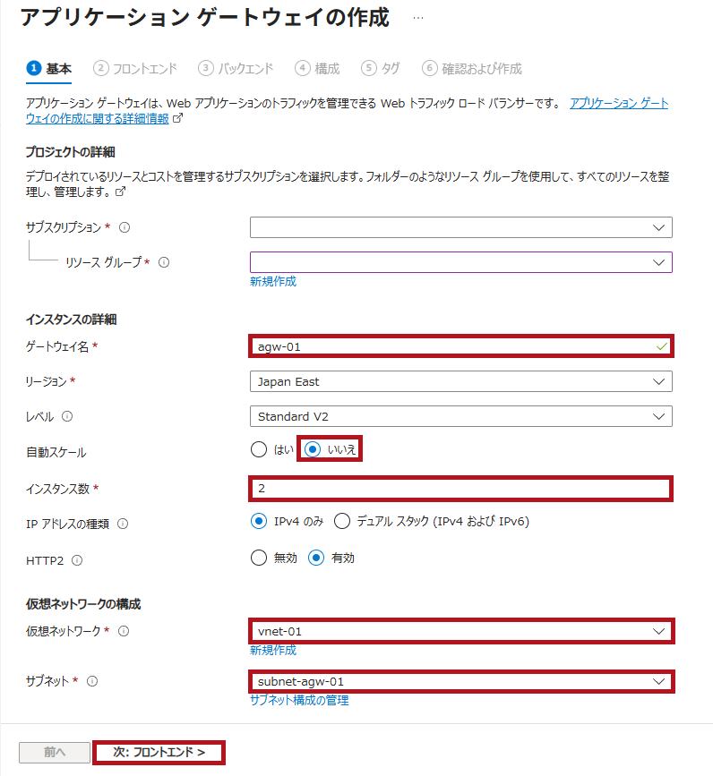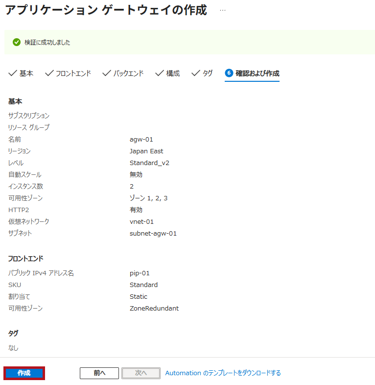 ※サブネットやパブリックIPアドレスなどの関連リソースは、Application Gatewayと同時に作成できます。