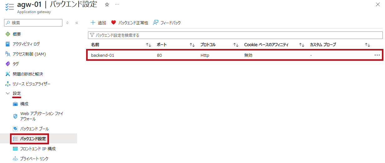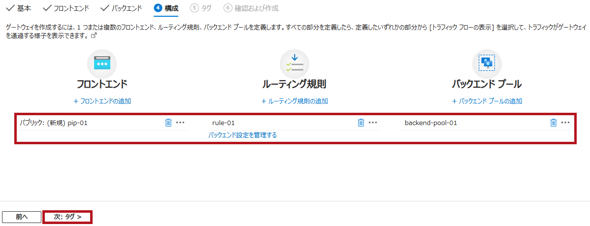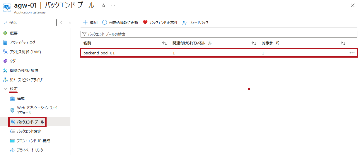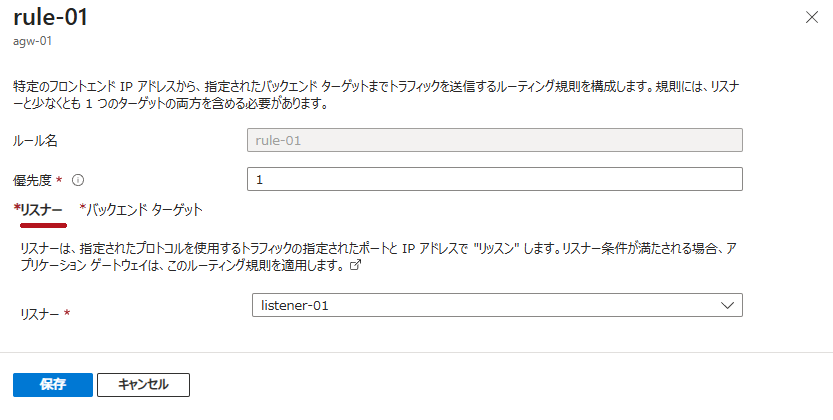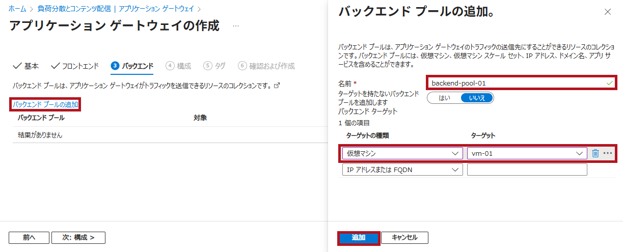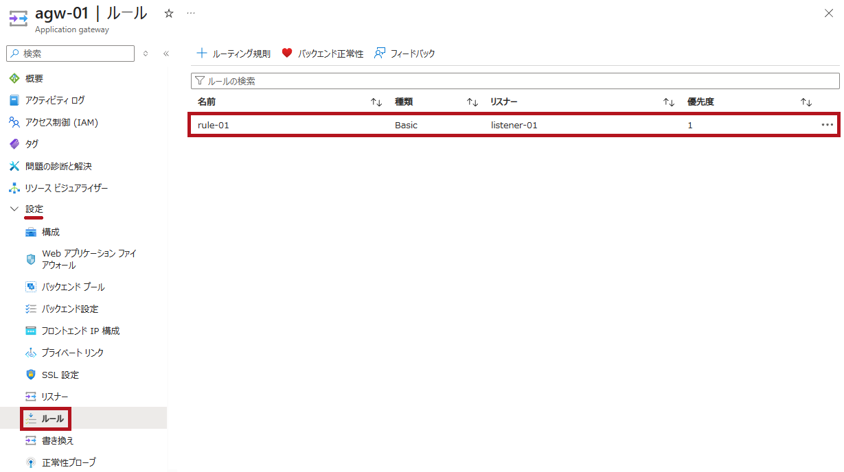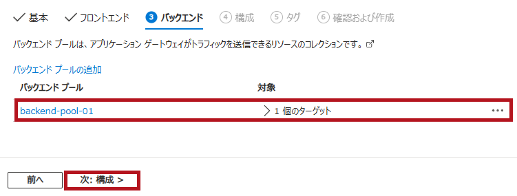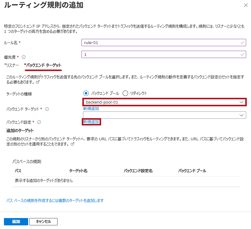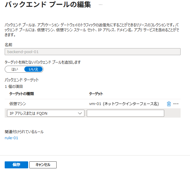 | ターゲットの種類 | バックエンドプール(backend-pool-01) | |