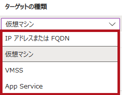 | ターゲット | 仮想マシン(事前準備した仮想マシンを指定) | |