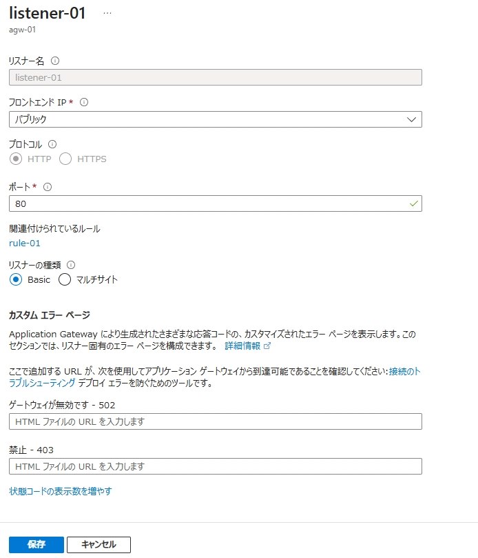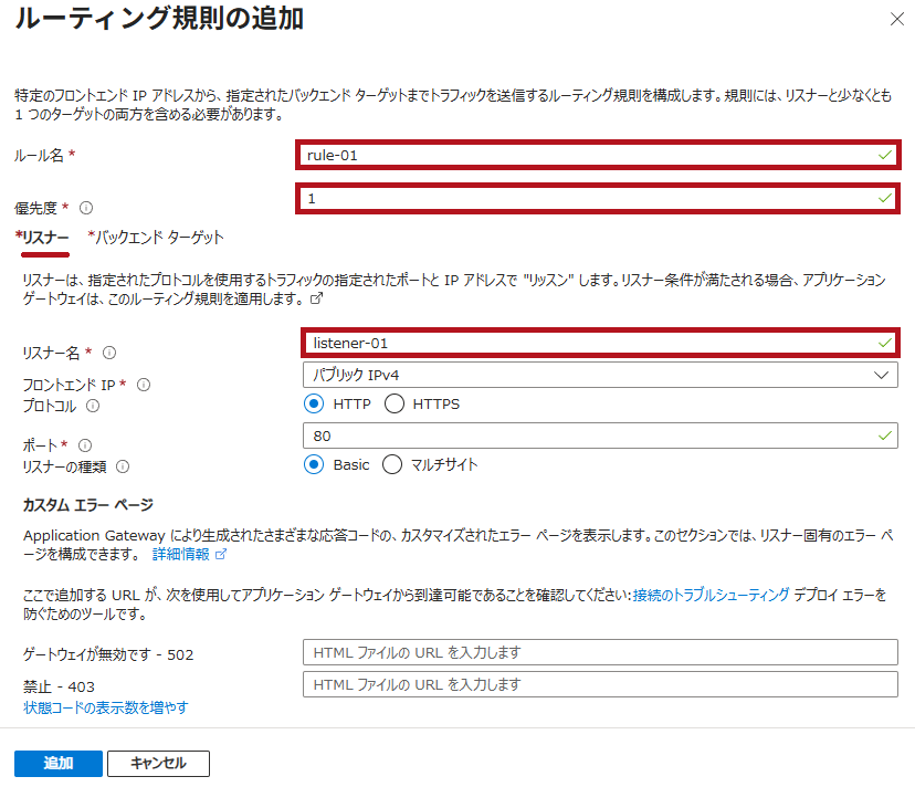 Application Gatewayのカスタムエラーページはリスナーで設定します。