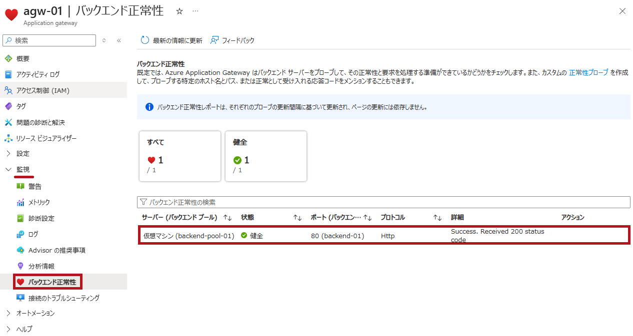 バックエンドの正常性確認方法や監視設定手順については、こちらの記事で紹介しています。