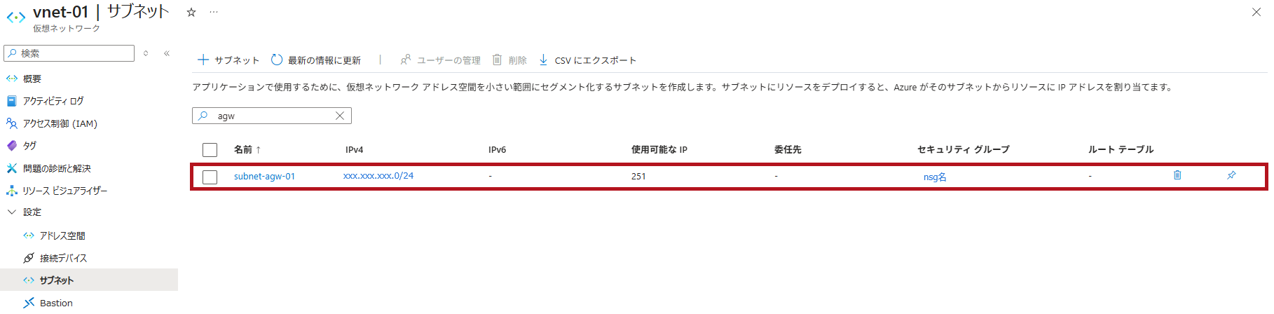 Application Gatewayのサブネットには、関連付けるネットワークセキュリティグループ(NSG)が必要です。