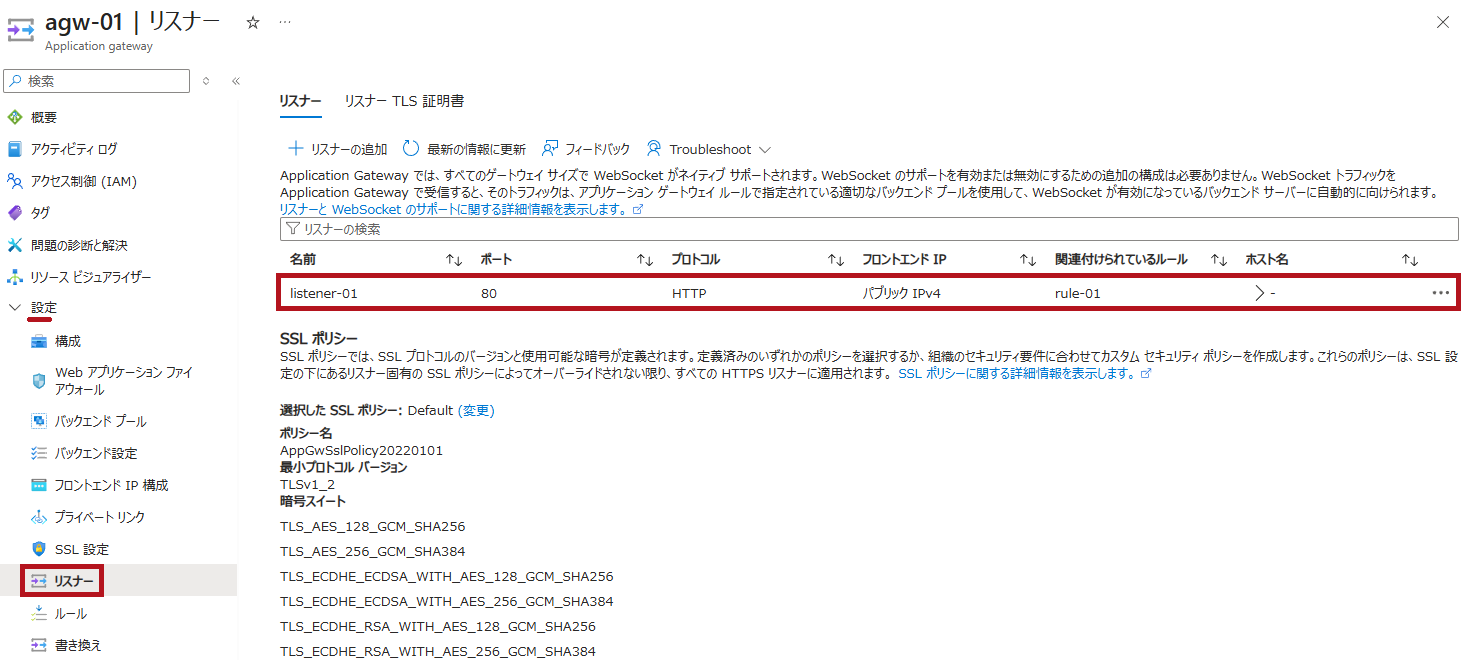 リスナーは、Application Gatewayがアクセスを受け付けるための設定です。