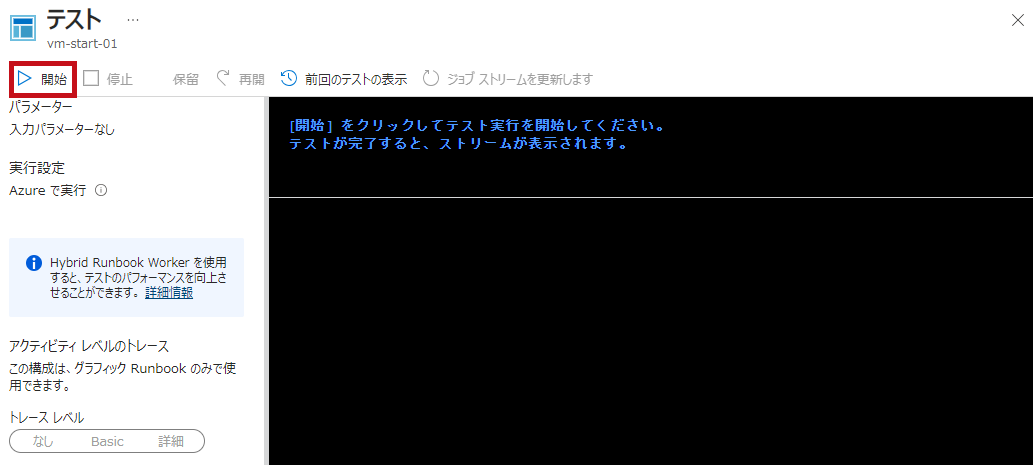 | 仮想マシンを起動するRunbook(パラメーターを使う) | ||