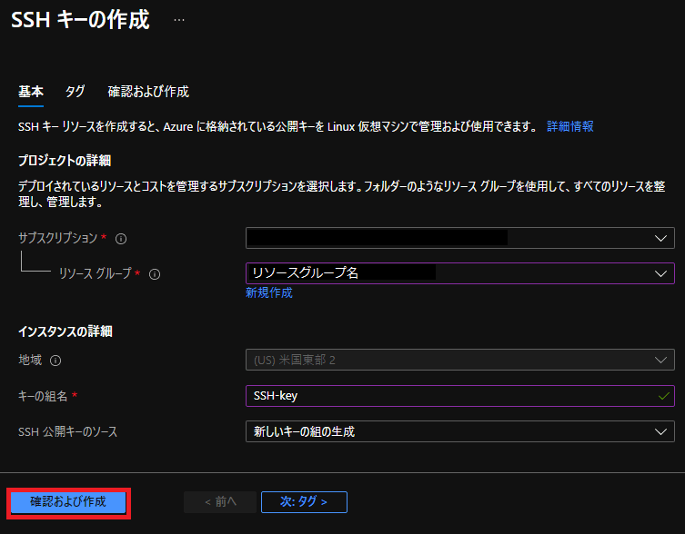 登録したAzure SSHキーは仮想マシン作成時に利用できます。