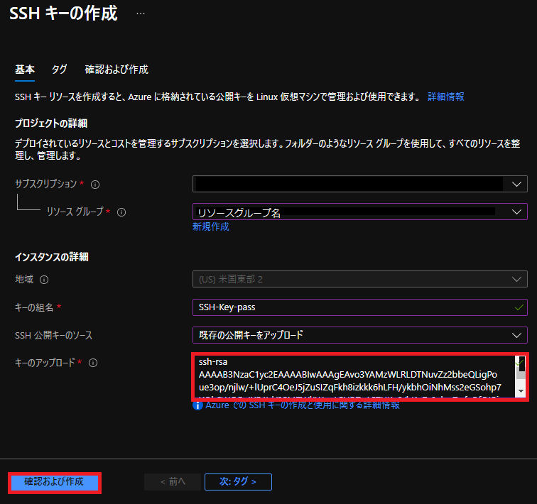 Azure SSHキーに公開鍵を登録しておくことで、仮想マシン作成時に再利用できて便利かと思います。