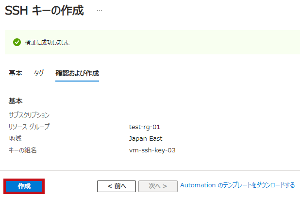 “vm-ssh-key-03″という名前でリソースを作成しています。
