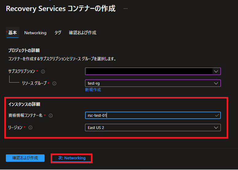 | 基本 | 資格情報コンテナー名 | rsc-test-01 |