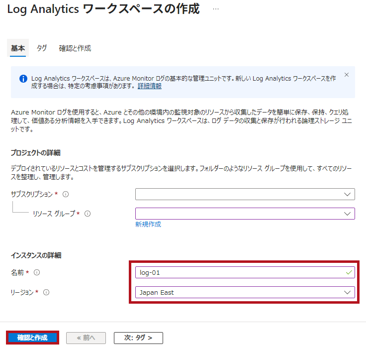 そして、Log Analyticsのデータを収集・管理するためのAzureリソースが、Log Analytics ワークスペースになります。