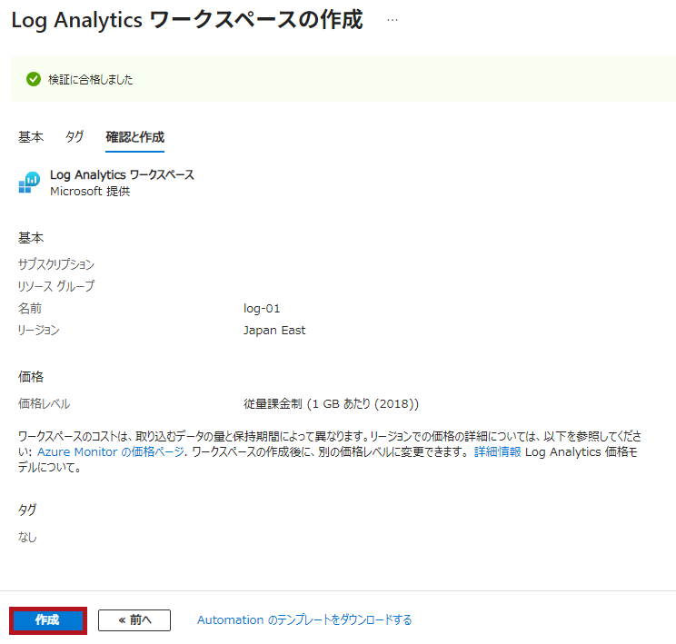 - 2. Log Analytics ワークスペースのリソースを作成する手順