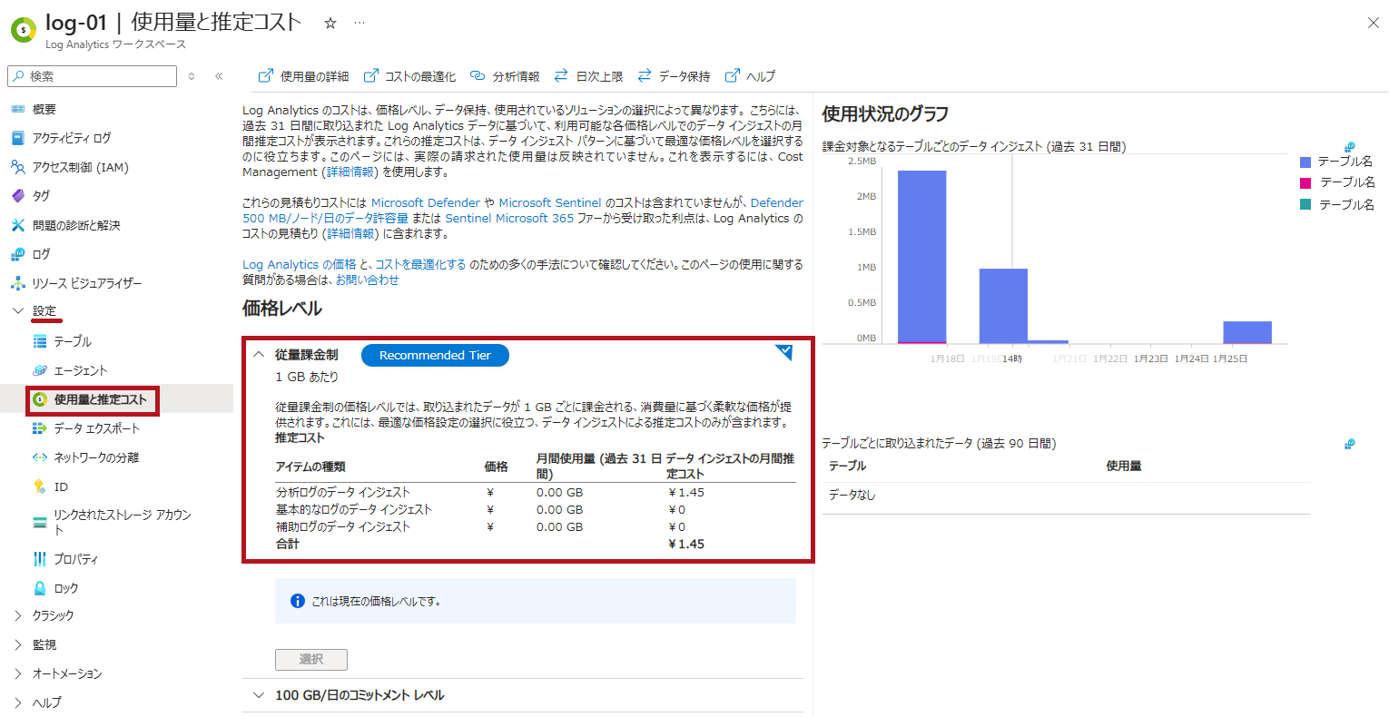 Azure Log Analyticsの概要、収集対象ログ、テーブルプラン、課金