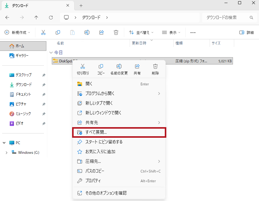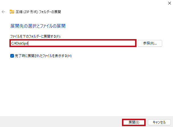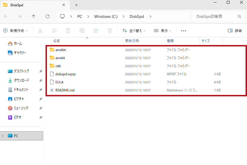 公式サイトからDiskSpd.ZIPをダウンロードします。