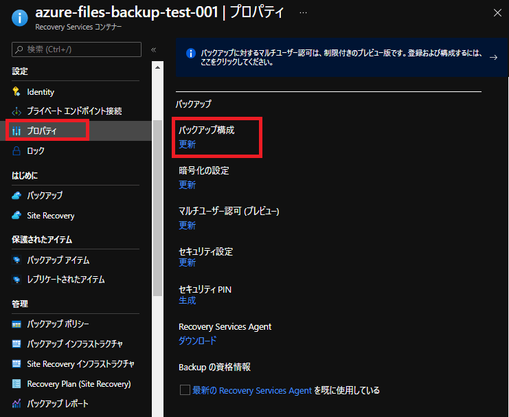 - 1.4. ストレージアカウントのファイル共有とRecovery Services コンテナーから設定可能