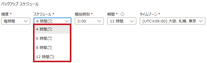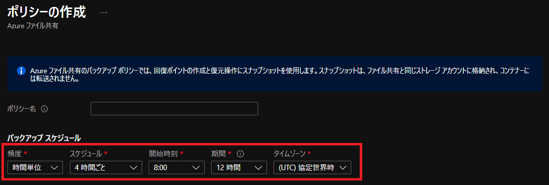 Azure Filesのバックアップスケジュールは時間帯での指定が可能