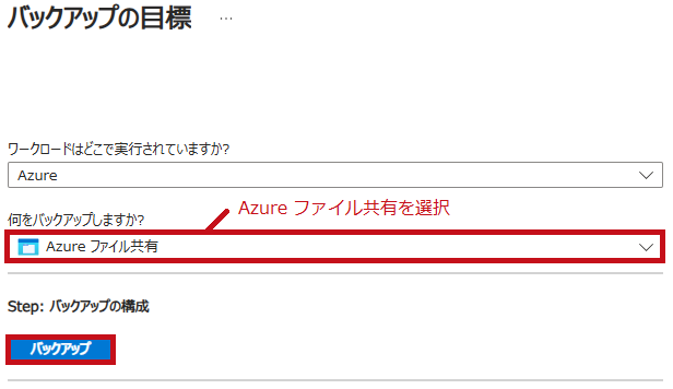 ストレージアカウントのファイル共有からバックアップ設定