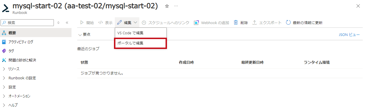 Runbookの実行履歴はジョブのメニューで確認できます。