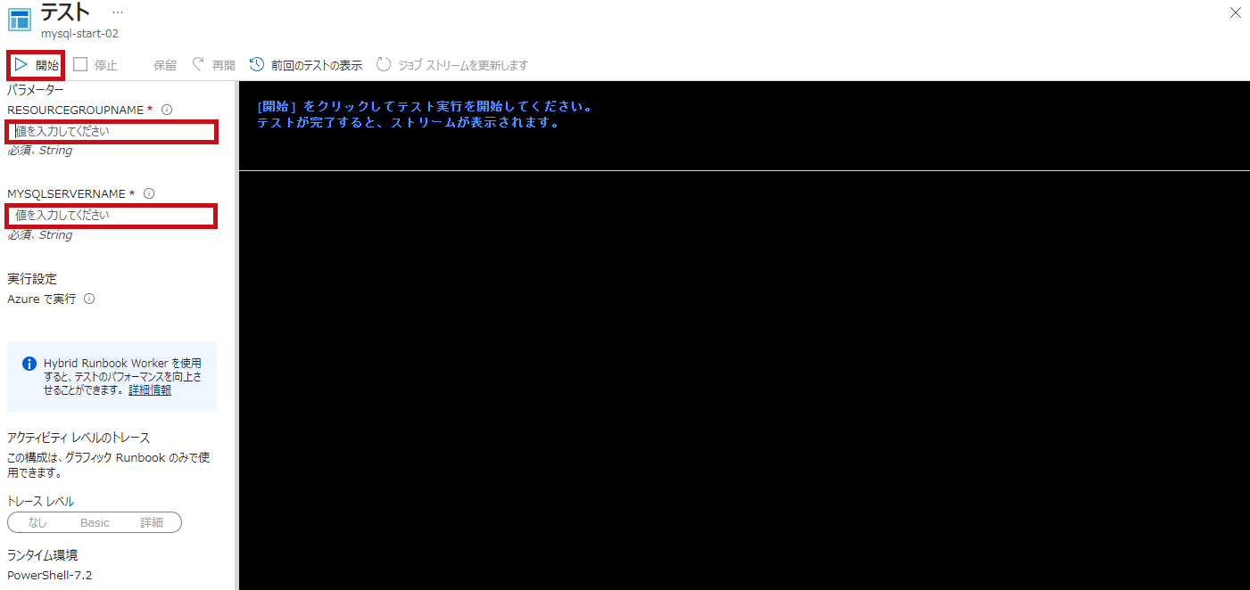 Azure Database for MySQL フレキシブル サーバーを開始するRunbook