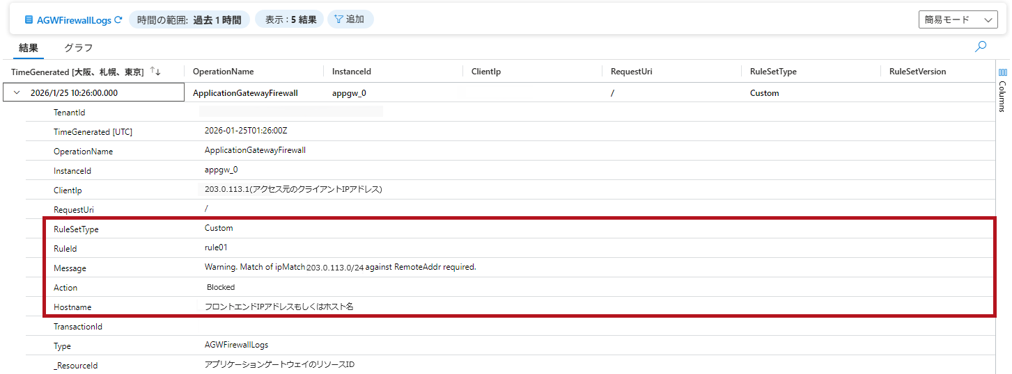 WAFポリシーで作成したカスタムルールのログをLog Analyticsで確認
