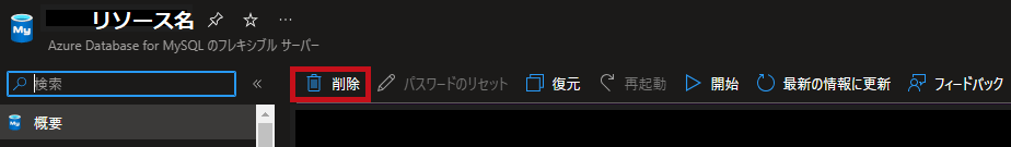 ※リソース(Azure Database For MySQL Flexible Server)は削除済みの状態です。