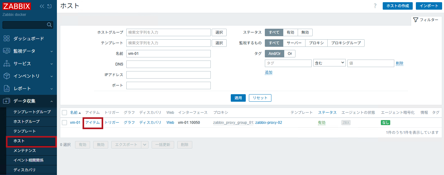 アイテムを新規作成する場合は、ホストのアイテム作成から開始します。