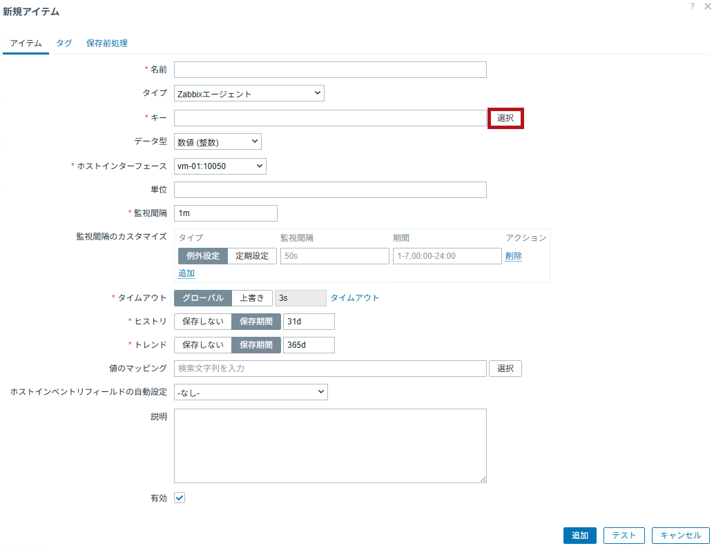 ※Zabbixサーバー側の負荷なども確認しながら、監視間隔は設定します。