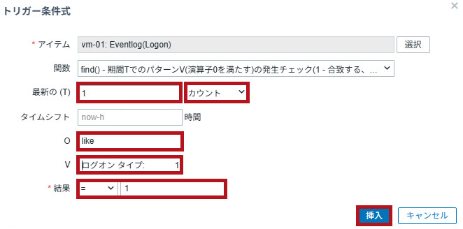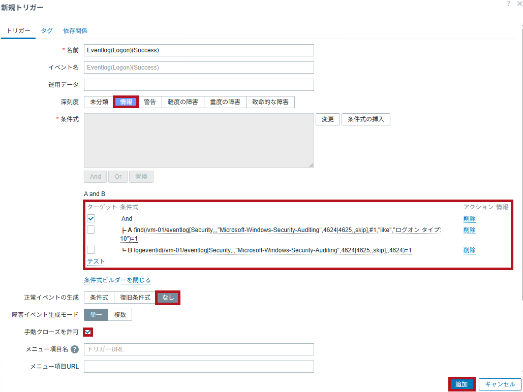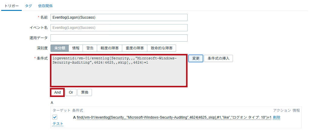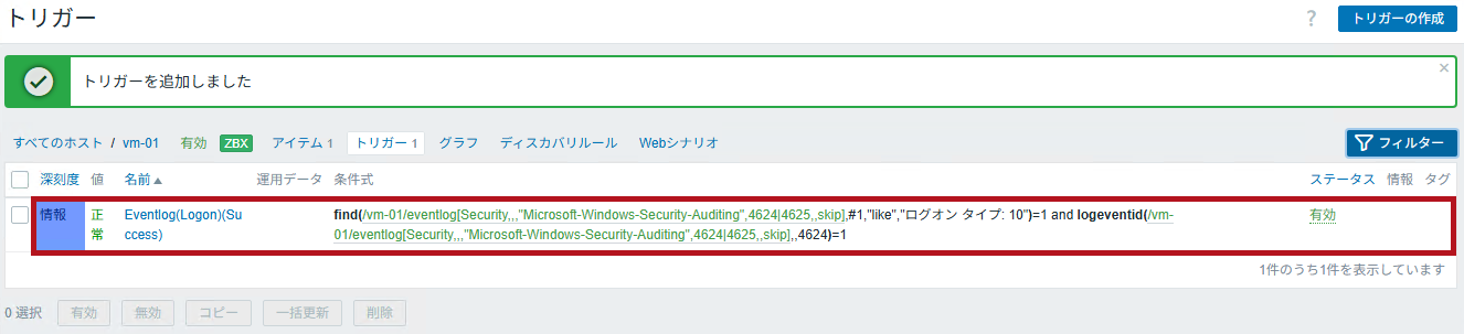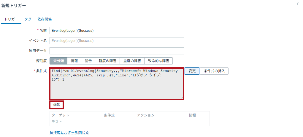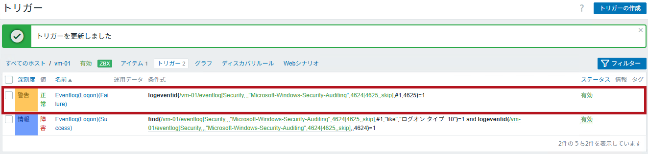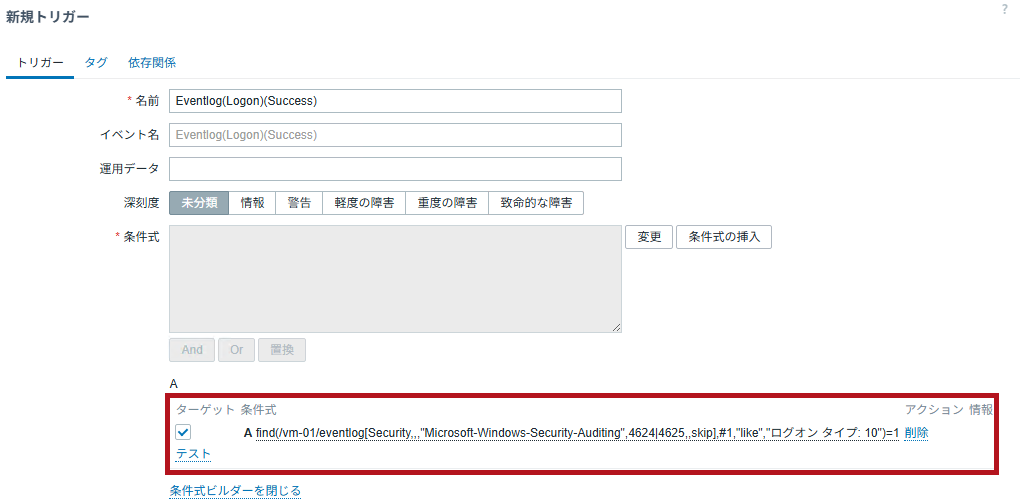 ログオンエラーのイベントログを監視するトリガーを作成 | ||